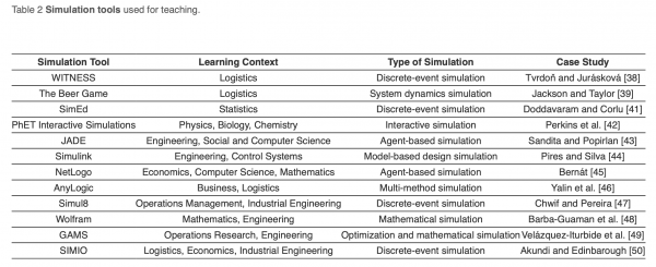 - 스페인 폴리테크닉 대학교(UPV): 시뮬레이션을 활용하여 지속 가능한 자원 관리를 실습할 수 있도록 MBA 수업에 도입하였음. 또한 마케팅 수업에서는 시뮬레이션을 활용하여 학생들이 시장 경쟁 전략을 세우는데 도움을 줌