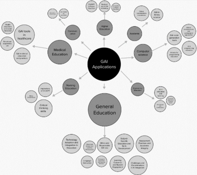 교육 분야의 GAI 연구 및 응용 프로그램 요약 [그림 출처: 원문 자료]